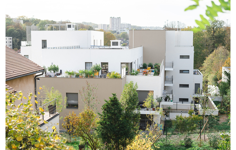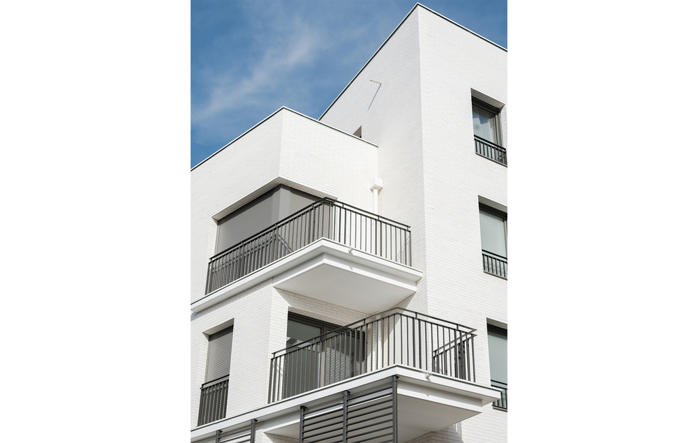 Les architectes ont choisi un contraste de blanc et de gris afin de faire ressortir les différents volumes. De multiples balcons et loggias animent l’ensemble. Plus haut, les garde-corps protégeant les terrasses laissent deviner de magnifiques surfaces.