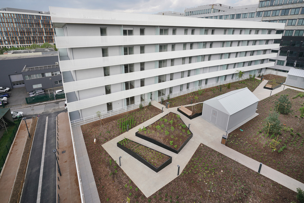 Un jardin central s’étend du Nord au Sud et comprend une superficie de 830 m2 d’espaces végétalisés et de 281 m2 d’espaces minéraux. Eminence et distinction offrent une nouvelle vision du quartier, plus végétalisée et aérienne…