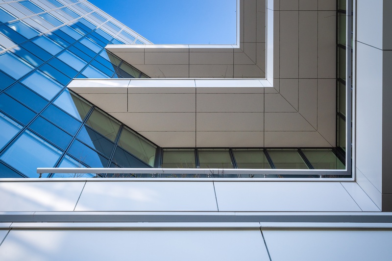 Au-delà, le bâtiment privilégie le confort des utilisateurs, par l’aménagement d’espace conviviaux et de services : hall double hauteur, cafétéria ouverte sur le jardin, restaurant, espaces modulables et de rencontres informelles, services à la carte : salle de fitness, conciergerie, auditorium.